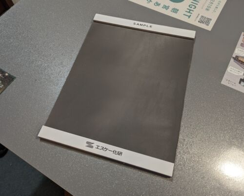 こんばんわ 店舗で使おうかな、どうしようかな、と思っている仕上げ材の塗りサンプルが届きました。 塗装や左官などの仕上材の実際の色合いや質感を確認するためにメーカーに依頼して作ってもらうサンプル材です。 たいがいA4サイズぐらいの台紙に各色塗って…