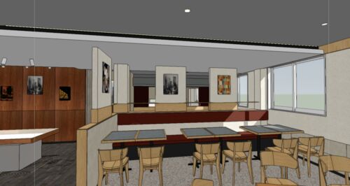 こんばんわ 現在進行中の和食店舗。 イメージパースをちょこちょこ作りつつあります。 飲食店ですがギャラリーを併設しています。パース画像左側の板貼りの空間がギャラリーです。 地域のクラフト、ハンドメイド系作家さんや、海外、イラスト、陶器、などこ…