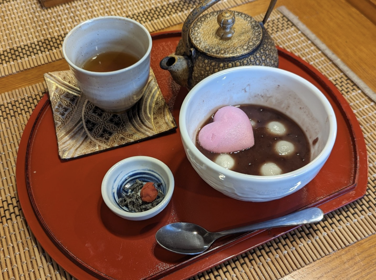 お団子屋さんにもハートの最中が。僕は別に縁結びに行ったわけじゃないけどね。