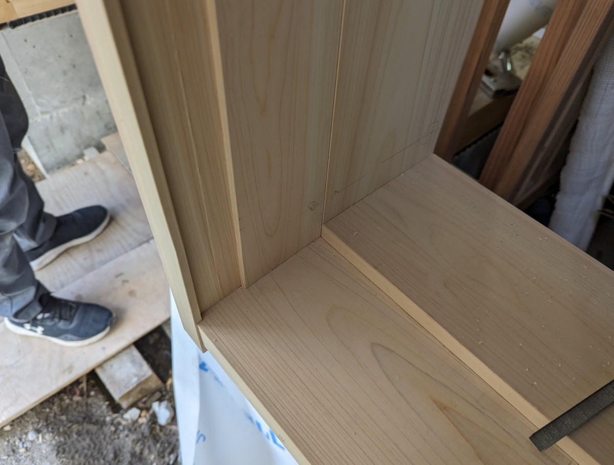 大工さんがきれいな仕事をしてくれています、ほんとにこういうのを見ると頭が下がる、頼もしいです。「難しいことやらせやがって!」と怒ってくれるのが嬉しい。